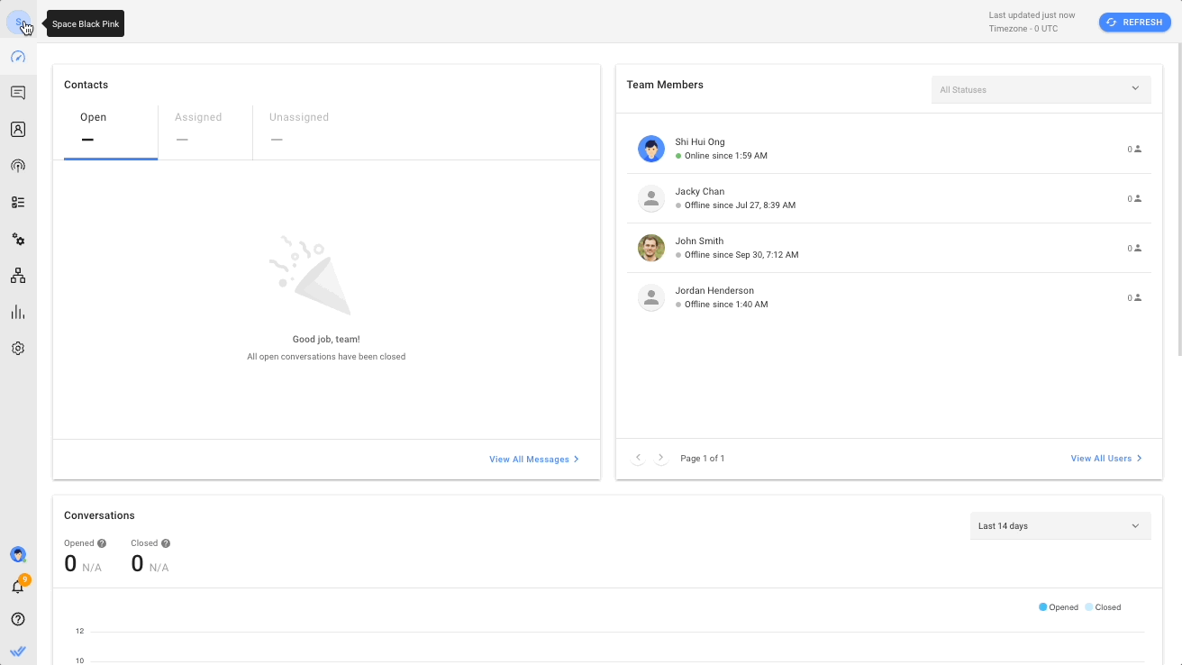 Los usuarios pueden ser invitados a varios espacios de trabajo y pueden cambiar entre ellos si es necesario. Para ello, vaya al conmutador de espacios de trabajo en el menú de navegación lateral.