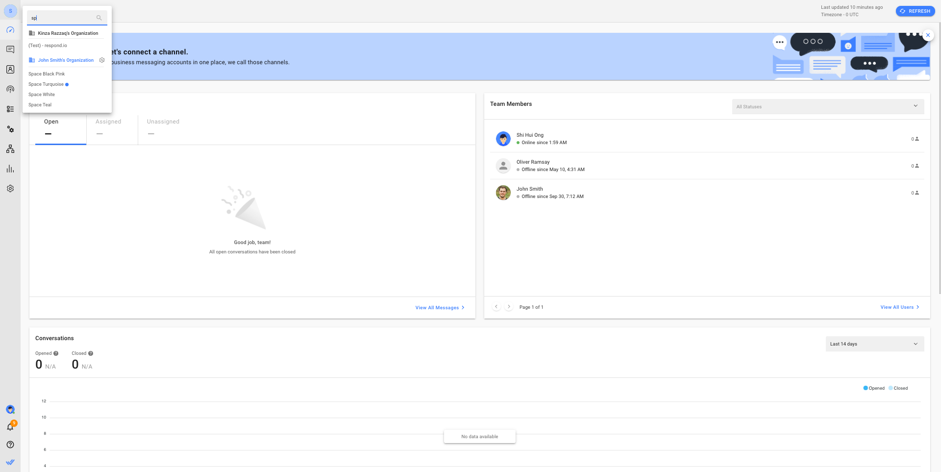 Todos los espacios de trabajo a los que un usuario tiene acceso aparecerán junto con la organización.
